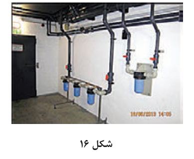 لوله ها مناطق بسيار مناسبى به منظور شكل گيرى بيوفیلم ها بوده و همواره حجم وسيعى از ميكروب ها را در درون خود جاى مى دهند. معمولا تا رسيدن آب تازه يا يون زدوده شده( دايونايز) به وان اصلى، اين آب مى بايست مسافتى بيش از 100 متر و يا چند طبقه اى را طى كند، (كه در طول مسير دچار افت فشار در مناطقى خواهد شد). در طول گذر آب از لوله ها، آب توسط گرماى حاصل از اتاق هاى توليد گرم شده و در نتيجه شرايط مناسبى براى رشد بيوفيلم ها فراهم مى شود. پاكسازى هاى شيميايى در لوله كشى ها تنها به صورت جزئى موثر بوده و به همين دليل است كه در تمامى پروسه هاى توليدى ،كنترل رشد بيوفيلم ها در لوله ها از اهميت بالایى بر خورداراست. با فيلترهاى ميكروبى AGXX كه در بخش خاصى از لوله ها كار گذاشته مى شوند، مشكل آلودگى خطوط لوله به ميزان زيادى كاهش میيابد. در شكل ١١ فيلترهاى ميكروبى AGXX كارگذاشته شده در خطوط لوله آب يون زدايى شده. نشان داده شده است. به منظور به حداكثر رساندن ميزان حفاظت، بهترين محل براى نصب اين فيلتر ها ، قبل از ورود آب به حمام واكنش است.